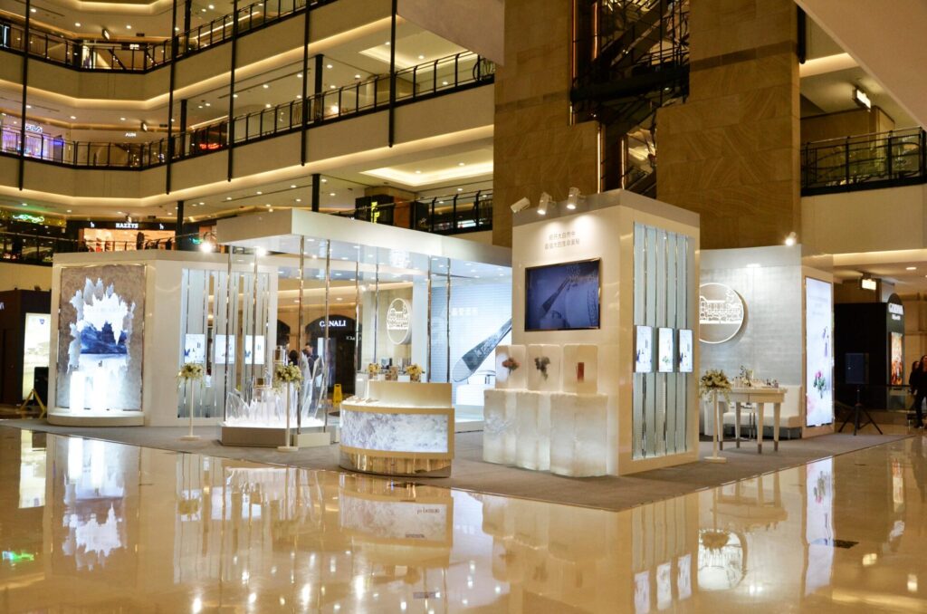 REO is located in Shanghai,China, Shanghai REO focuses on the exhibition activities of beaut y and fashion products, and has many years of experience in the design and production of roadsho w booths in the luxury industry.